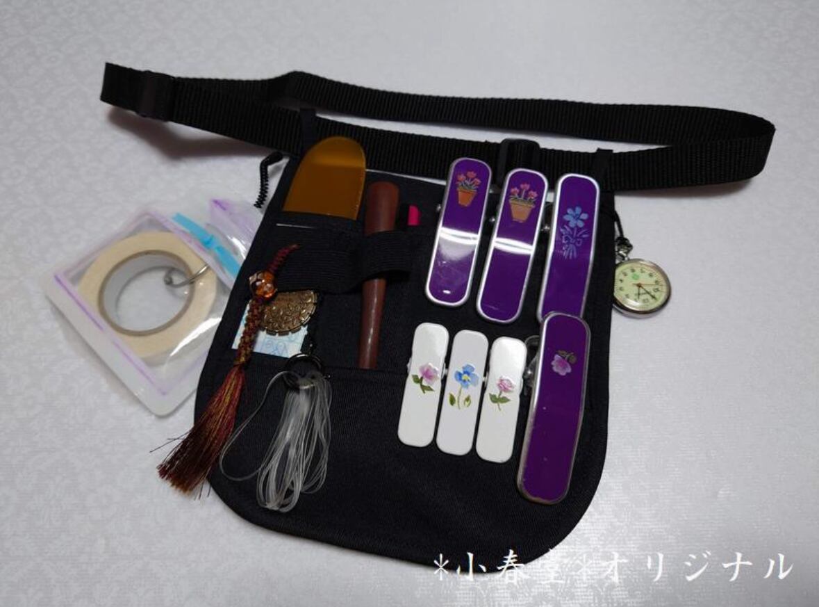 着付師さんが着付け中に着付師グッズをスムーズに出し入れできストレスを感じることのない仕様の着付師ポシェット「小春堂オリジナル」は2015年3月に発表しました。既に多くの方にご愛用頂き、お着付け現場にお供させて頂いております。